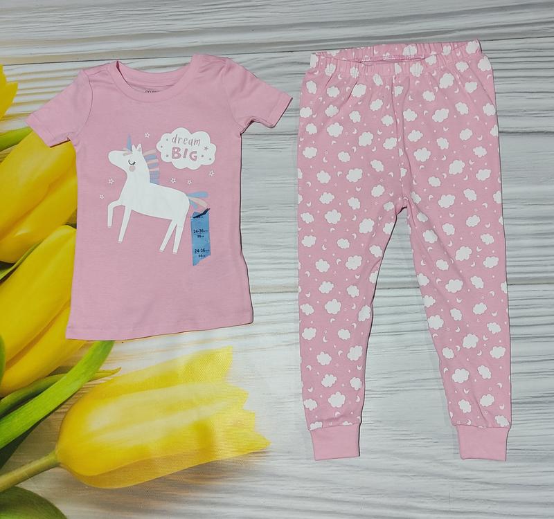 ‼️В наличии!!️ 🥰Хорошая пижамка🥰 🥰На бирке 2-3 года, 98 см🥰 🤩Замеры: футболка - длина 40 см, ширина 24 см брюки - длина 57 см, пояс 25 см, шаг 37 см🤩