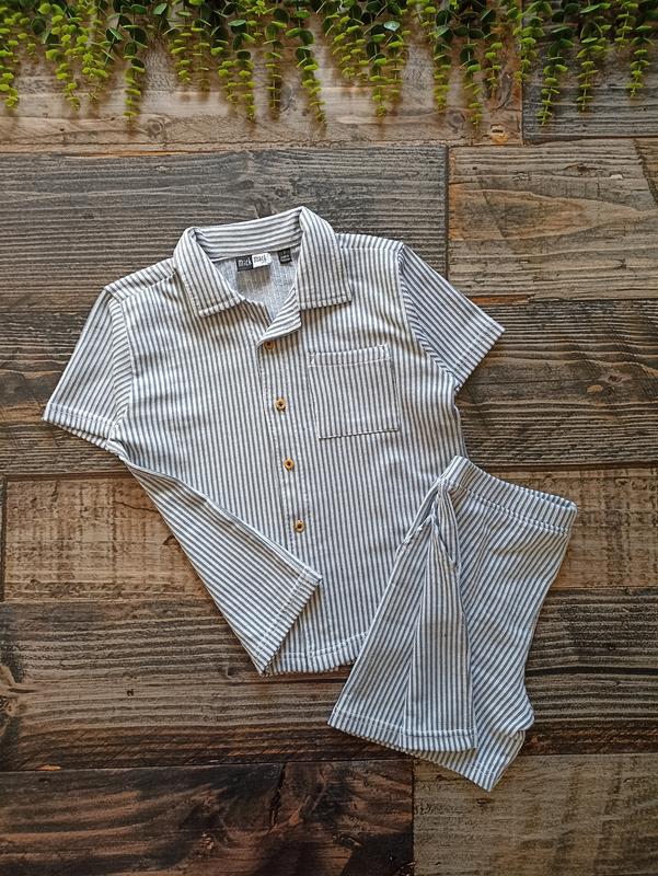 Пижама в отличном состоянии, немного тянется, застегивается на пуговицы, эластичный пояс, с карманами, замеры есть на фото.