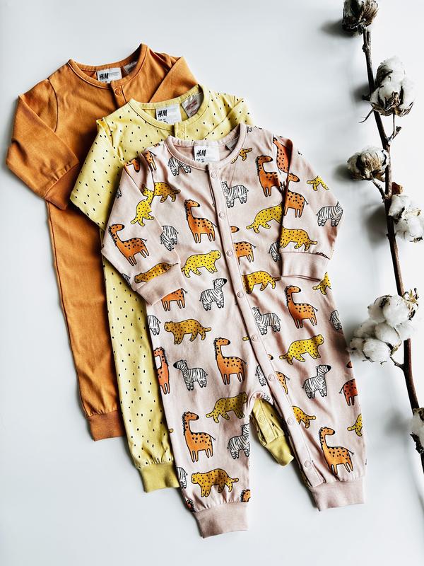 Набір дитячих бавовняних піжам від бренду H&M 🌾 В наборі 3 піжами на кнопках Розміри в наявності: ✅62 см (2-4 міс) ✅68 см (4-6 міс) ✅92 см (1,5-2 роки) ✅98 см (2-3 роки) ✅104 см (3-4 роки) Склад: 100% органічна бавовна #000141
