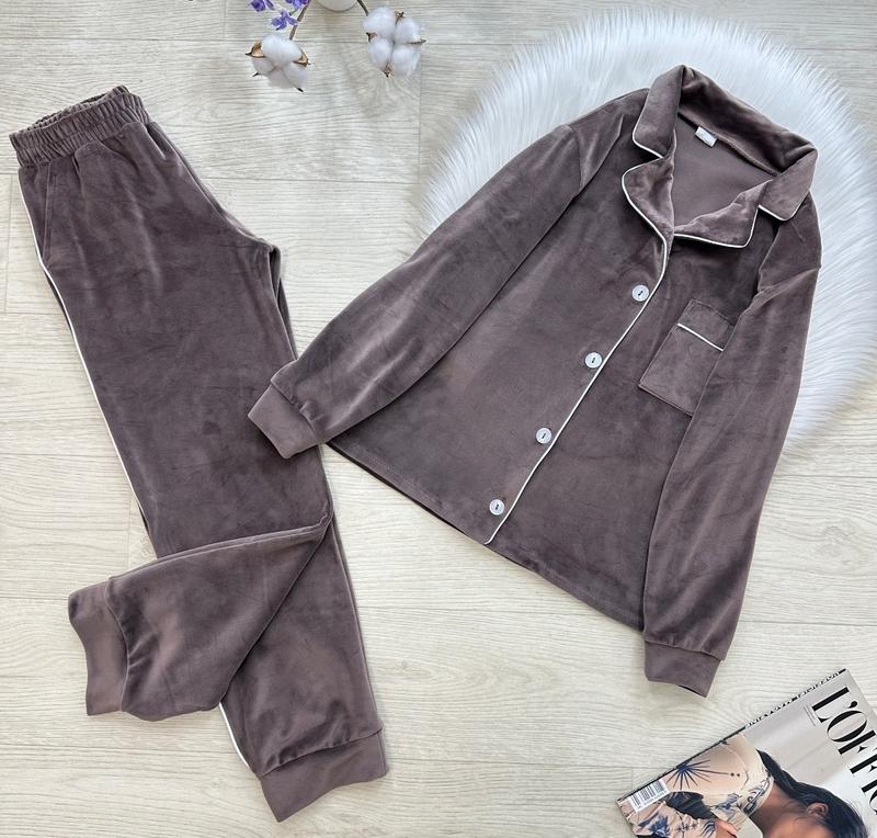 через кнопку купить только полная оплата!!! Нежный, уютный и невероятно приятный к телу комплект для дома 💫 🩶 Кофточка в стиле рубашки - на пуговицах, с аккуратно накладным кармашком. 🤍 Штанишки с широкой резиночкой на поясе и действующими карманами по бокам. 💫 Ткань - королевский велюр: мягкий, приятный к телу, выглядит роскошно. 🇺🇦 Производитель - Украина. р.146-1шт р.152-1шт р.158-1шт р.164-1шт ЗАМІРИ ⤵️ +/- 1-2см!!! ◾р.146-Кофточка: длина от плеча 53см/ рукав от плечевого шва 50см/ ПОГ 45см. Штанишки: длина по боковому шву 84см/ шаг 63см/ ширина бедер 45см/ ширина пояса 28см (тянется до 46см). ◾р.152-Кофточка: длина от плеча 55см/ рукав от плечевого шва 53см/ ПОГ 46см. Штанишки: длина по боковому шву 90см/ шаг 67см/ ширина бедерсм/ ширина пояса 30см (тянется до 46см). ◾р.158-Кофтинка: длина от плеча 56см/ рукав от плечевого шва 54см/ ПОГ 48см. Штанишки: длина по боковому шву 93см/ шаг 70см/ ширина бедер 48см/ ширина пояса 30см (тянется до 46см). ◾р.164-Кофтинка: длина от плеча 57см/ рукав от плечевого шва 55см/ ПОГ 49см. Штанишки: длина по боковому шву 96см/ шаг 72см/ ширина бедер 50см/ ширина пояса 30см (тянется до 46см).