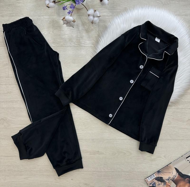 через кнопку купить только полная оплата!!! Нежный, уютный и невероятно приятный к телу комплект для дома 💫 🩶 Кофточка в стиле рубашки - на пуговицах, с аккуратно накладным кармашком. 🤍 Штанишки с широкой резиночкой на поясе и действующими карманами по бокам. 💫 Ткань - королевский велюр: мягкий, приятный к телу, выглядит роскошно. 🇺🇦 Производитель - Украина. ЗАМІРИ ⤵️ +/- 1-2см!!! ◾р.146-Кофточка: длина от плеча 53см/ рукав от плечевого шва 50см/ ПОГ 45см. Штанишки: длина по боковому шву 84см/ шаг 63см/ ширина бедер 45см/ ширина пояса 28см (тянется до 46см).