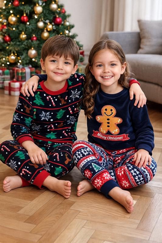 🍪 Дитячий флісовий костюм “Пряничний чоловічок” Неймовірно м’який флісовий костюм у темно-синьому кольорі з аплікацією пряничного чоловічка та написом Merry Christmas. 🔹 Тепла кофта та штанці з яскравим зимовим візерунком 🔹 М’яка еластична тканина, приємна до тіла 🔹 Зручний крій — ідеально для дому або дитячого садка Створить святковий настрій і комфорт у холодну пору року.