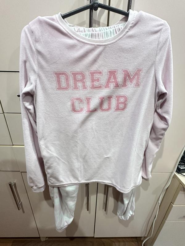 Піжама з тонкого велюру блудного рожевого кольору,дуже мʼяка і приємна тканина.Кофтина однотонна,штани в клітинку.