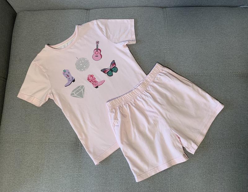 Піжама/комплект для дівчинки 🔸Склад: 100 % Котон 🔸Бренд: George (Великобританія) 🔸вік 8-9 років 🔸р.128-135см 🔸 приємні до тіла та мають гарну якість Футболка: довжина 48см ног 37см Шорти: довжина 29см талія 25см