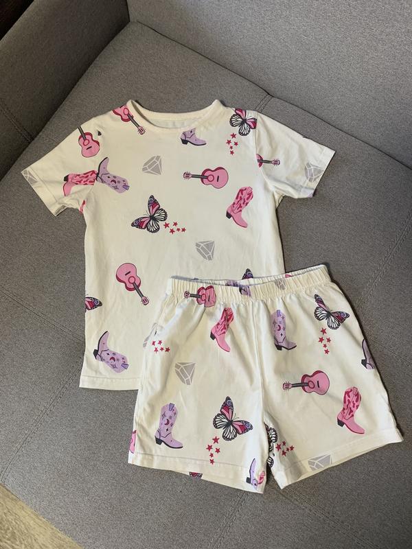 Піжама/комплект для дівчинки ▪️Склад: 100 % Котон ▪️Бренд: George (Великобританія) ◾️вік 8-9 років ▪️р.128-135см ▪️приємні до тіла та мають гарну якість Футболка: довжина 48см ног 37см Шорти: довжина 29см талія 25см