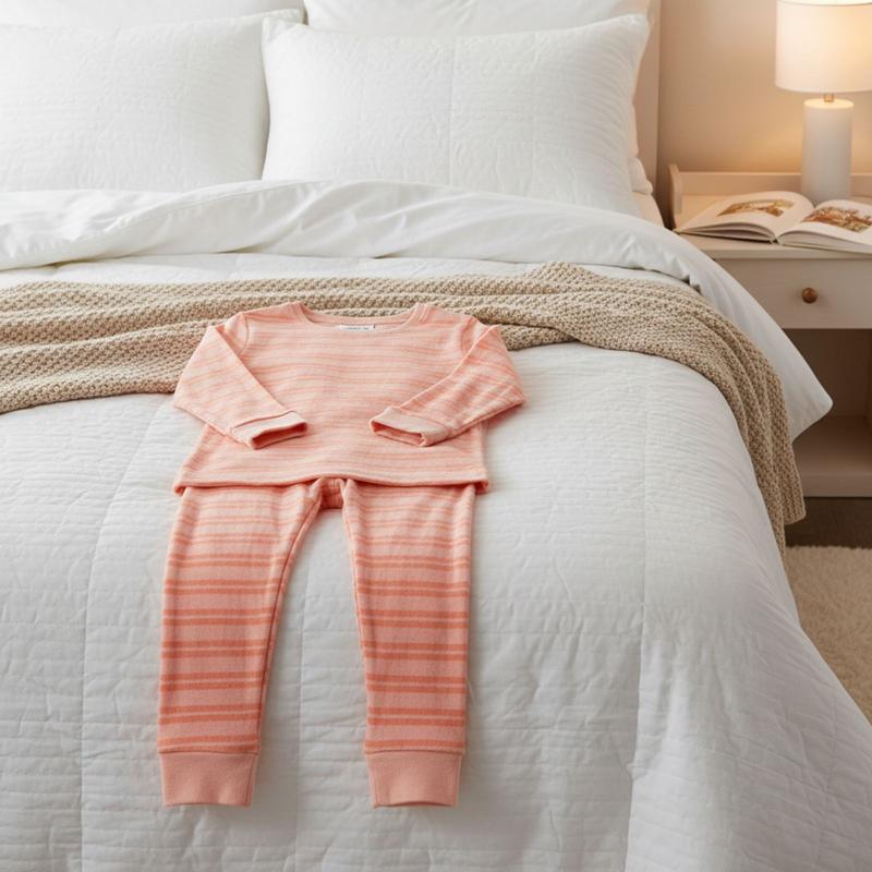 Размер 98/104 (3-4 лет) Детская пижама в нежном персиковом цвете Мягкий и комфортный комплект с длинным рукавом, выполненный в приятном персиковом оттенке с горизонтальными полосками. Пижама состоит из лонгслива и штанишек на манжетах, обеспечивающих удобную посадку и не стесняющих движений во время сна. Нежная приятная к телу ткань. Лонгслив с длинным рукавом. Штанишки с эластичным поясом и манжетами. Легкий и дышащий материал. Идеальна для домашнего уюта и комфортного сна. В соответствии с «Законом Украины о защите прав потребителя», пижама, белье входят в перечень товаров, которые не подлежат обмену или возврату.