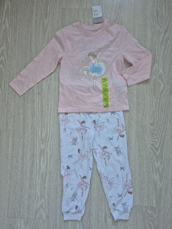 пижама бренда Primark на девочку, возраст 4-5 лет, рост 110 см. хлопок 100%. замеры ПОГ 33 см, плечи 28 см, рукав 37 см, длина по центру спинки 42 см. брюки пояс полуобхват 25 см, бедра 30.5 см, длина 64 см, шаг 41 см.