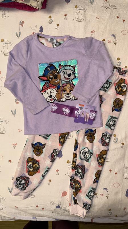 Тепла флісова піжамка. Чудово підійде для садочка. Улюблені персонажі з мф Щенячий патруль, Paw patrol. Розмір 5-6 років. Оздоблено блискучою наліпкою з голограмним ефектом. Пошкоджень немає.