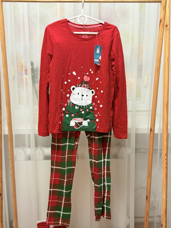 На рост 134/140 см. Верх: длина 49 см, рукав 50 см, ширина под руками 40 см. Низ: довжина 90 см, пояс 28 см. 100% бавовна.