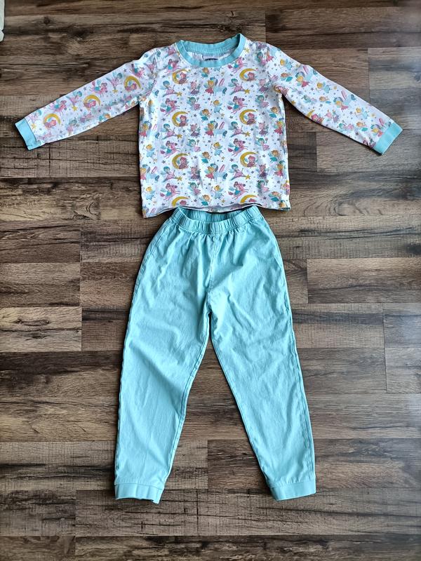 кофта: дрлина- 41, ПОГ-32, ширина низа -32, рукав -36/28, плечи -26. брюки: длина -62, внутренний шов -42, посадка спереди -20, ПОТ-22, тянется до 31, ПОБ-35, ширина штанины бедра-19. 100% cotton. состояние очень хорошее. пятен порезов нет. отправка после оплаты. новая почта укр почта