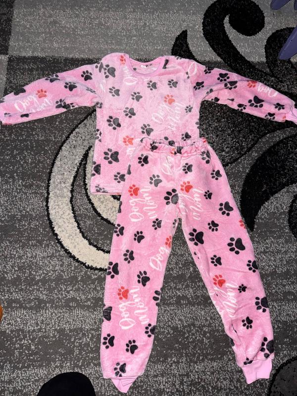 Очень мягкая и теплая махровая пижамка. Рост 134 см. Носилы мало потому состояние очень хорошее.