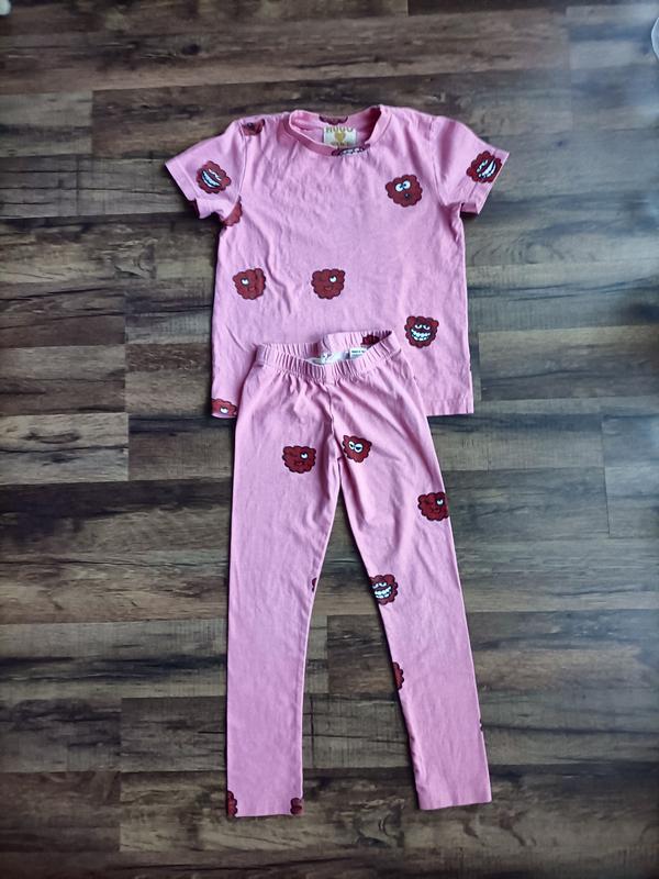 футболка,: длина-44, ПОГ-35, ширина низа-36, рукав -12,5, плечи -28. Брюки: длина -63, внутренний шов -47, посадка спереди + 15, ПОТ-22, тянется до 28, ПОБ-30, ширина штанины бедре -17. состояние очень хорошее. пятен порезов нет. 95% cotton,5% elastan. отправка после оплаты. новая почта укр почта