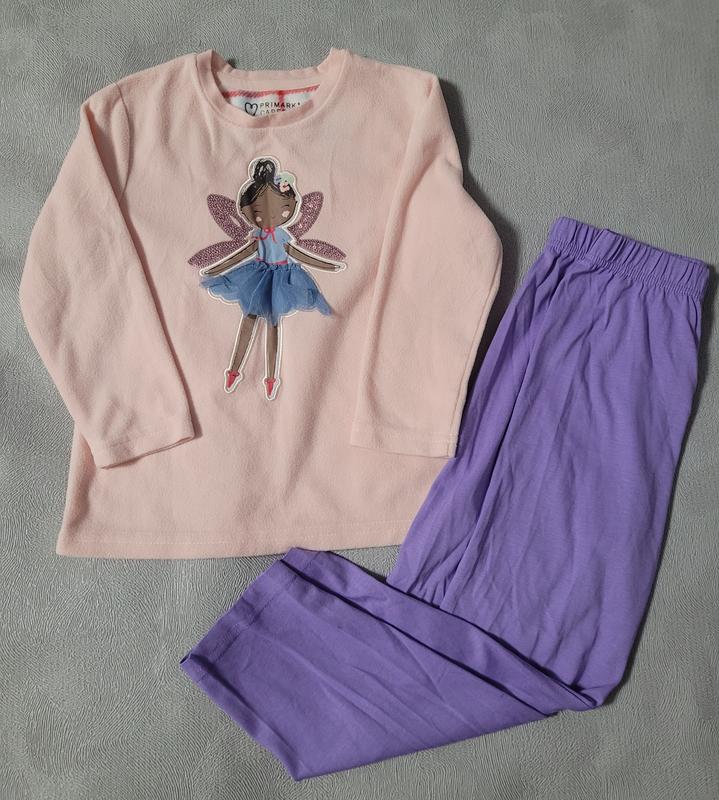 В наличии пижама Примарк для девочки на рост 110 см. Верх флис с аппликацией, низ хлопок. Цвет кофточки розовый, штанишки сиреневый.