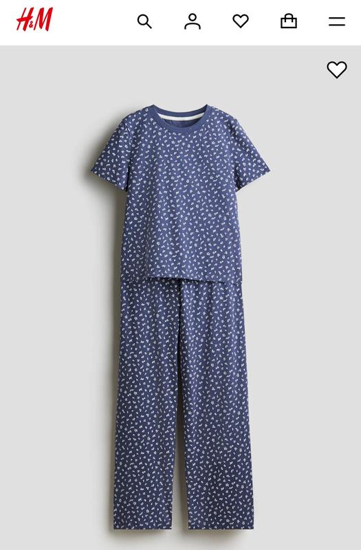 Продам новую котоновую пижаму h&m. Отличное качество, приятное на ощупь. Размер 14+р. 170см. (S) При потребі дам заміри.