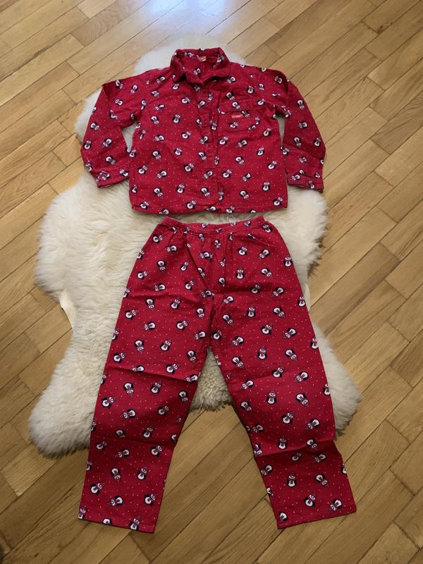 На 122-128, на 7-8 лет. Очень приятная и мягкая на ощупь ткань. Состояние без дефектов и нюансов, цвет неизменный, если присмотреться- чуточку покошенная ткань после стирки. В домашних условиях ребенку всегда должно быть комфортно в одежде, в которой он ходит. Лучше всего для сна и дневных развлечений выбрать пижаму с забавным принтом. Данный комплект гарантированно не кусается и не обтягивает силуэт, не стесняя движений. Комплект изготовлен их 100 % хлопка . Верхний элемент набора с открытым воротником и длинным рукавом имеет карман и застегивается на пуговицы спереди. Длинные брюки с эластичной талией обеспечивают удобное регулирование посадки.