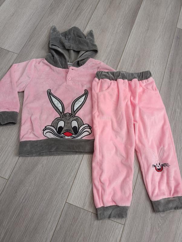 Костюм, можно використовувати як теплу піжамку, гарний велюр , дуже м'якенький, приемний до тіла, на капюшоні гарні вушка, малюнок набитий