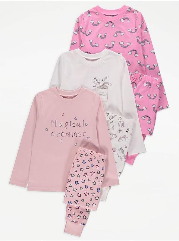 Гарний набір піжам для дівчинки George в дуже гарному стані. Розмір 9-10 років. Рожева в веселку, реглан, пог 40 см, довжина 53 см, рукав від плеча 53,5 см; штани, пот 28,5 см (резинка тягнеться до 34 см), довжина 89 cм, крок 65 см. Рожева, в зірочки, реглан, пог 40 см, довжина 50,5 см, рукав від плеча 52 см; штани, пот 30 см (резинка тягнеться до 36 см), довжина 88 см, крок 62 см