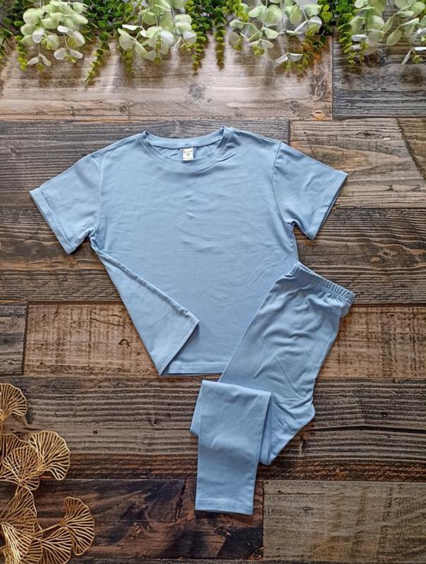 Пижама в отличном состоянии, тянется, имеет короткие рукава с подворотом и эластичный пояс, тоненькая, замеры находятся на фото.