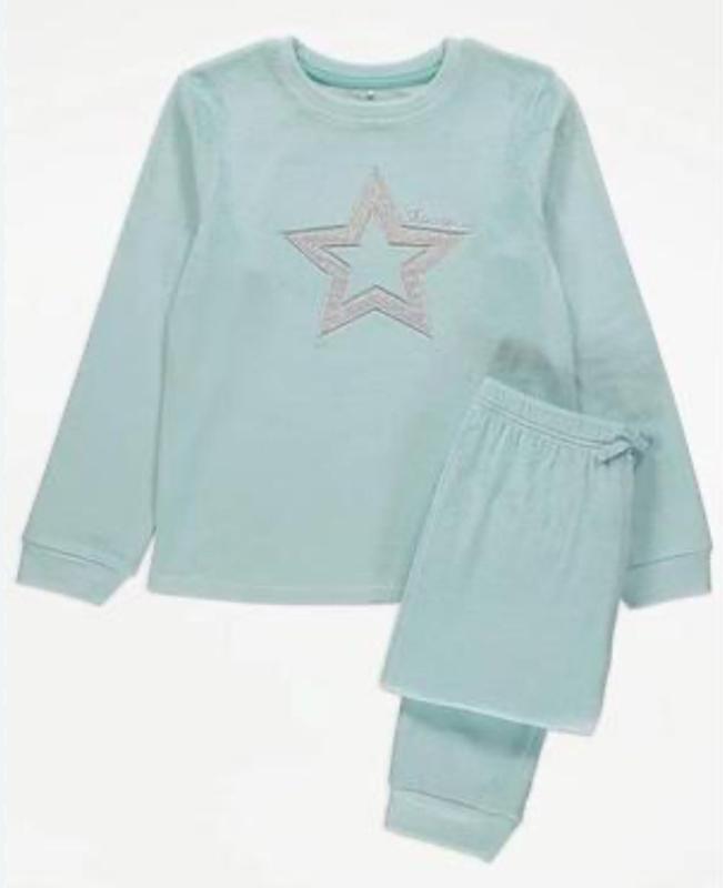 детская велюровая пижама от бренда George. Комплект выполнен в мятном цвете и состоит из свитшота с длинными рукавами и брюк