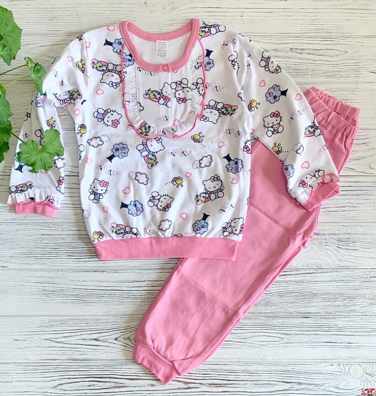 Очень красивые качественные пижамки девочкам "розовые Китти" от украинского производителя ТМ Ляля. Материал: плотный качественный трикотаж Размеры: 86, 98 Производство: ТМ"Ляля" Украина Замеры: 86: кофта - длина 38см, ширина 29см, рукав 26см; штаны - длина 47,5см, шаг 29,5см 98: кофта - длина 40,5см, ширина 33см, рукав 31см; штаны - длина 54см, шаг 35,5см