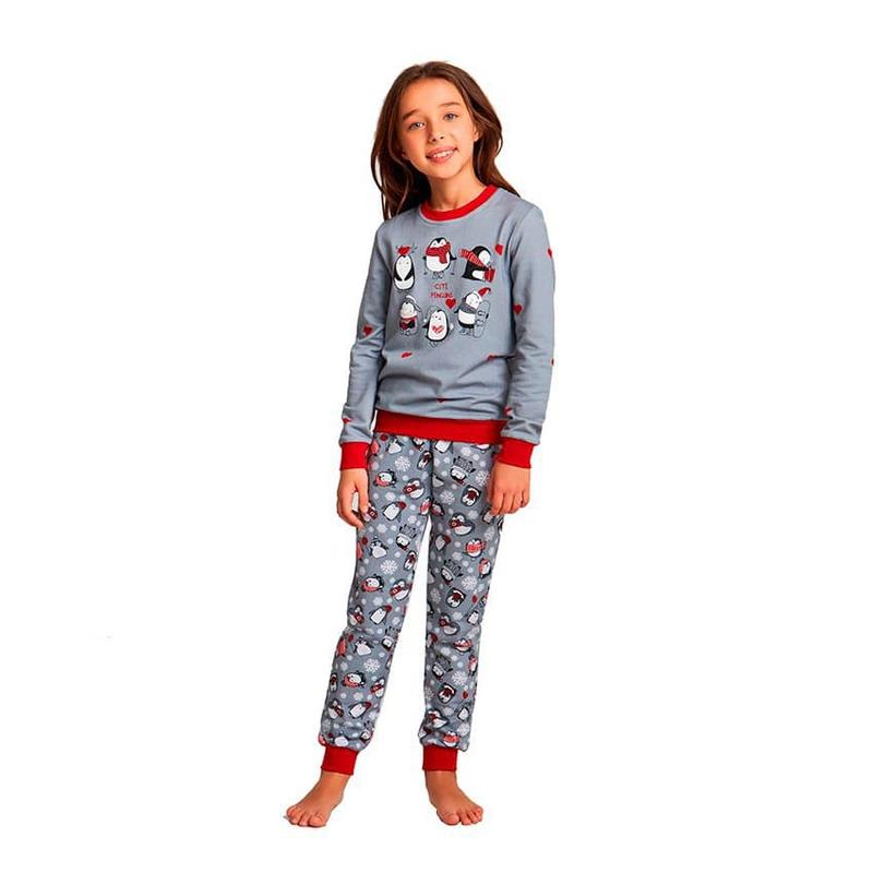 Домашний хлопковый комплект на девочку серого цвета ellen gnp 016/005