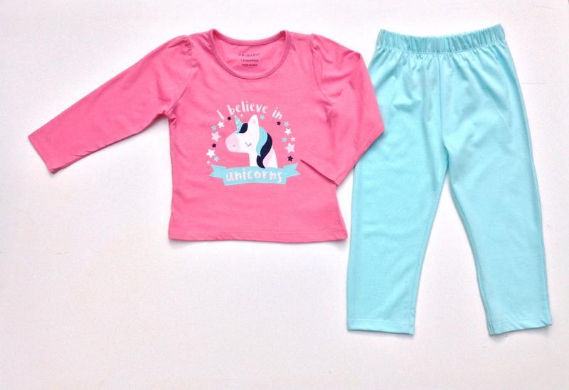 Пижама для девочки с принтом "Единорог" Кофточка декорирована глиттером Рукав длинный Мягкая, приятная к телу Пояс в штанишках хорошо тянется Размер 92 см (1.5-2 года) Состав: Кофточка 100% бавовна Штанишки 60% хлопок, 40% полиэстер Доставка: Нова пошта: по суботам. Условия оплаты: *По полной предоплате на карту *По предоплате 200 грн, остальные наложенным платежей. Обмену и возврат нет.