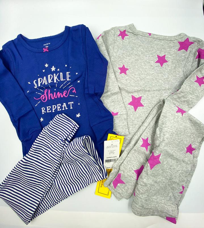 Пижама Carter’s в размере 2T(86-93см), 4Т на рост 98-104см и 5Т(104-110). В комплект входит 2 кофты с длинным рукавом и 2 пары штанов. 100% хлопок