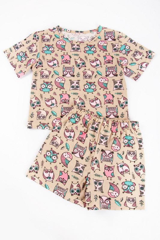 Легка, піжамка для дівчинки Модель вільного крою, складається з футболки з короткими рукавами, а також з шорт на гумці. Тканина - кулір Склад - 100% бавовна Розмір - 110 Ціна - 180 грн.