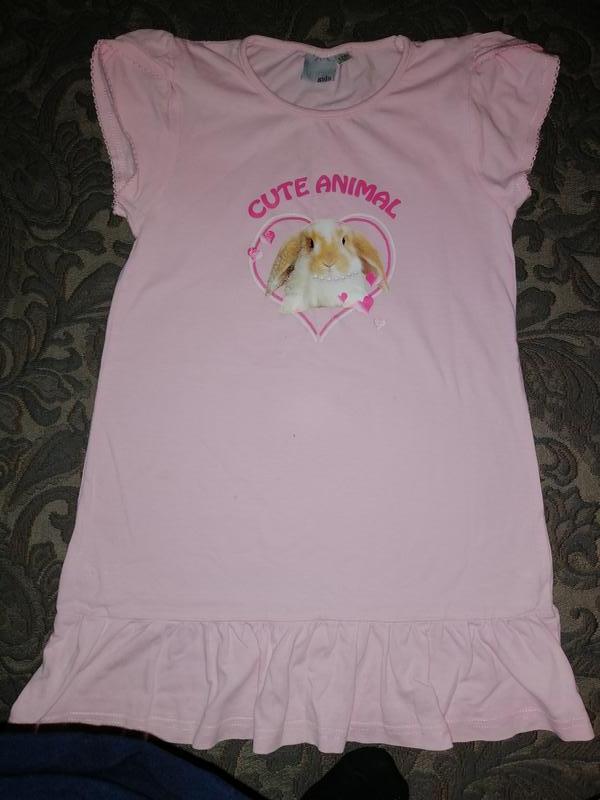 Пижама платье, р. 128/8 blue seven. 100 % коттон. Симпатичная аппликация кролика. По низу широкая рюшка. Приятная. Состояние очень хорошее. На последних фото тоже платье пижама продается, размер 128-134/8-9. С мелким симпатичным рисунком. цена - 45 грн Замеры: Платье-пижама с кроликом- Длина- 62 см Обхват груди - 66 см На последних фото тоже платье пижама продается, размер 128-134/8-9. С мелким симпатичным рисунком. цена - 45 грн. Трикотаж. Замеры: Длина - 70 см Обхват груди- 80 см