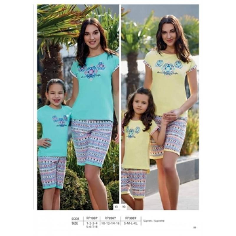 Пижама летняя мод.2067 Rolypoly - летняя пижамка, состоит из футболки и шорт Материал: супрем Состав: 100% хлопок Цвета: на фото Размеры: 152 152 длина футболки 58,5см, ПОГ 44,5см, шорты длина 50см, шаг 26см