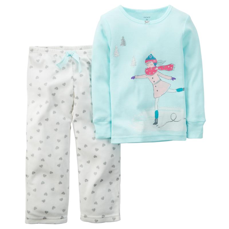 Пижама для девочки с длинным рукавом Состав: Верх: 100% cotton rib Штаны: 100% polyester fleece Размеры:2т (2 года), 3т (3года)
