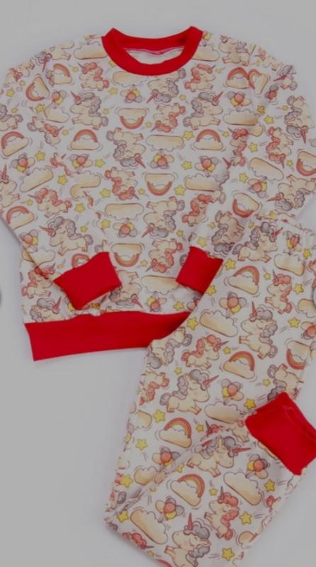 Пижама для девочек  изготовлена из трикотажного полотна с начесом.  Состав :100 % хлопок. Полотно мягкое ,теплое , приятное к телу .Комплект будет комфортен для сна . Размерный ряд с 98- ппо 122 р. Замеры соответствуют размерному ряду. Пижама имеет очень нежный принт.Є ще в голубому кольорі Ціна:160грн