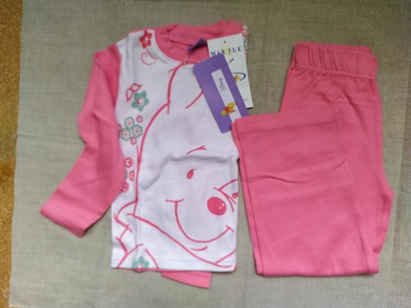 Новая пижамка, плотный трикотаж, 100% хлопок. Качество отличное. Длина штанов от резинки 59 см Дл. по внутреннему шву, шаг 39 см Ширина резинки в не растянутом виде 23 см Дл. рукава от плеча 37 см Плечо 7 см Длина кофты по спинке 37 см
