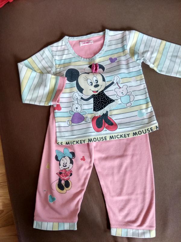 Пижама для девочки на 3 годика. Польская фирма Zhennisi. Кофточка и штанишки. Замеры кофточки: длина 36 см, ширина в плечах 26 см, длина рукава 31,5 см; штанишки: длина 49,5 см, ширина в поясе 20 см(резинка, тянется ещё), шаговая длина 32,5 см. Состояние хорошее, есть катышки(но при желании их можно убрать). Обращайтесь, с радостью отвечу))) Приятных покупок.
