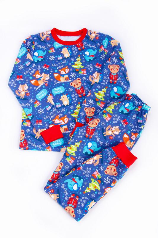Утеплена дитяча піжама з новорічним принтом виготовлена з трикотажного полотна - футер з начосом. Полотно м'яке, на бавовняній основі, не линяє та не кошлатиться. Піжама стандартного крою, повномірна. Склад: 100% бавовна. Рекомендації щодо догляду: прати в режимі "делікатне прання" при температурі не вище 30 градусів. 98-140 см Підходить як для дівчат, так і для хлопців. Є ще інші кольори, тому запитуйте