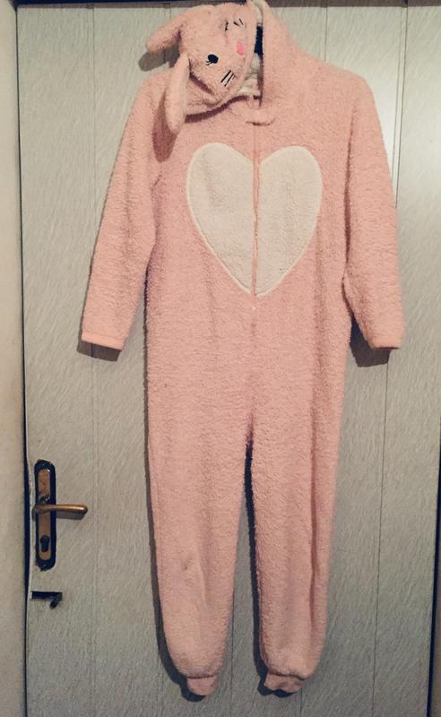 Світло-рожевий пухнастий кигуруми-зайчик для дівчинки підлітка Пог-44,дл рук-51,довжина-122,дл кроці-56см