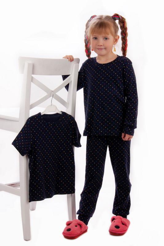 Піжама з трикотажного полотна "рібана". Полотно м'яке, приємне до тіла, не кошлатиться і не линяє, має бавовняну основу. Піжама , складається з джемпера, футболки та штанів. Піжама базового крою, повномірна. Склад: 100% бавовна Рекомендації щодо догляду: прати в режимі делікатного прання при температурі не вище 30 градусів.