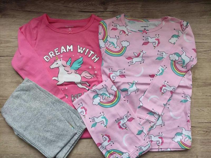 Пижама для девочки Carters очень хорошего качества, 100% котон. После стирки не линяет, не вытягивается. В наличии рост: 3Т - 93-98 см (Длина штанишек 53 см,длина кофты 39, ширина 26см, длина рукава 36см) 5Т - 104-110 см ( Длина штанишек 65 см, длина кофты 43, ширина 26см, длина рукава 40см) ⠀ Цена - 520грн