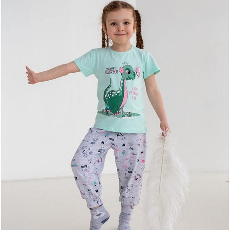Пижама для девочки с штанами Динозавр 7557 Размер: 3-4 5-6 7-8 Доставка: Новая почта, отправка в течение 2-4 рабочих дней. Согласно Закону Украины 3161-IV от 01.12.2005 «О защите прав потребителя», нижнее белье входит в перечень товаров не подлежат обмену или возврату.