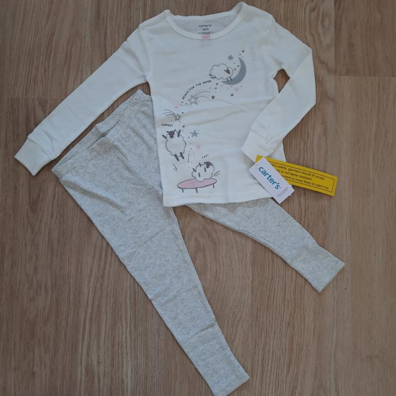 Пижамка для девочки Carters с принтам милых овечек, некоторые детали принта с шиммером Рукавчики на манжетах, низ штанинки с красивой строчечкой. Состав хлопок Куплена на официальном сайте 3t Топ Плечи 24 ПОГ 24 Длина по спинке 38 Рукав с манжетой 35 Штаники ПОТ 23 ПОБ 28 Длина по боковому шву 53 Шаг 38 4t Топ Плечи 26 ПОГ 26 Длина по спинке 40 Рукав с манжетой 38 Штаники ПОТ 25 ПОБ 29 Длина по боковому шву 58 Шаг 40