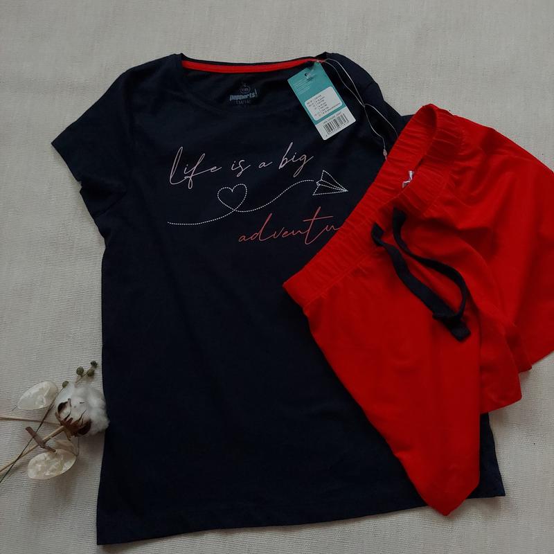 Літня піжама на дівчинку. Розмір 134-140. Хорошої якості, дуже приємна до тіла. Заміри: футболка ОГ - 36 см, Довжина - 50 см, шорти - ОТ - 28 см, ОБ - 41 см.