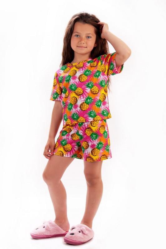 Легка зручна піжама для дівчаток з принтованого куліру. Модель вільного крою, складається з футболки з короткими рукавами, зі спущеною лінією плеча, округлою горловиною, а також шорт на еластичній тасьмі. Завдяки натуральному складу полотна (100% бавовна) ця піжама стане улюбленою річчю в домашньому гардеробі дівчаток, а асортимент модних принтів задовольнить будь-яку модницю. Також є можливість придбати сходжу модель жіночої піжами для створення Family look. Полотно: кулір. Склад: 100% бавовна. Рекомендації з догляду: праті за температури не більше 30 ° C. Розміри 98-116 см Кольори в асортименті. Запитуйте Shoppingwith_Smile