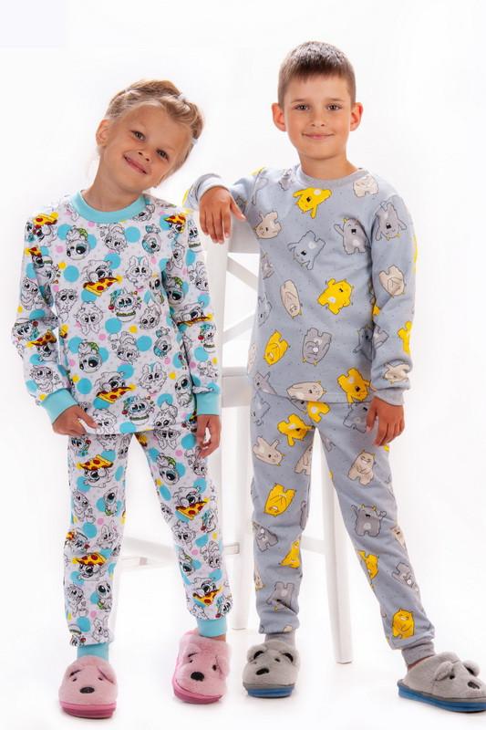 Піжама дитяча, пошита з якісного трикотажного полотна футер з начосом. Начісування матеріалу з виворітного боку. Завдяки начосу, полотно володіє хорошими теплоізоляційними властивостями. Підходить для повсякденного використання в прохолодну пору року. Розрахована на вік від 2 до 8 років залежно від зросту. При збільшенні температури прання виріб дасть усадку через наявність бавовни у склад