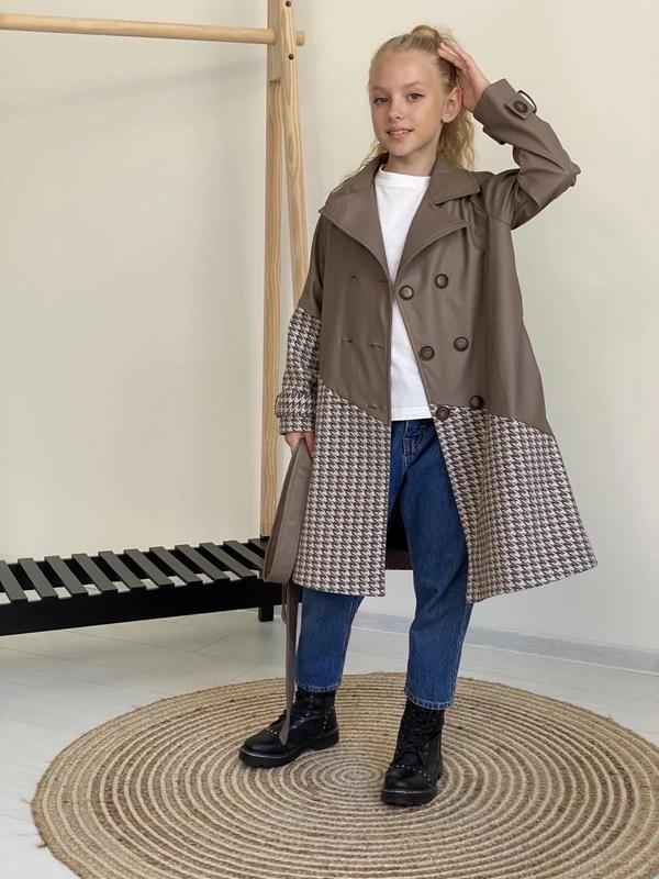 Дуже стильний Тренч поєднання еко шкіри та шерсті Каміла люкс якості на підкладці та гудзиках є пояс ціна 1050 Заміри від горловини Довжина/рукав/пог 128-72/51/40 134-79/54/43 140-85/57/44 146-91/60/45 152-96/63/46