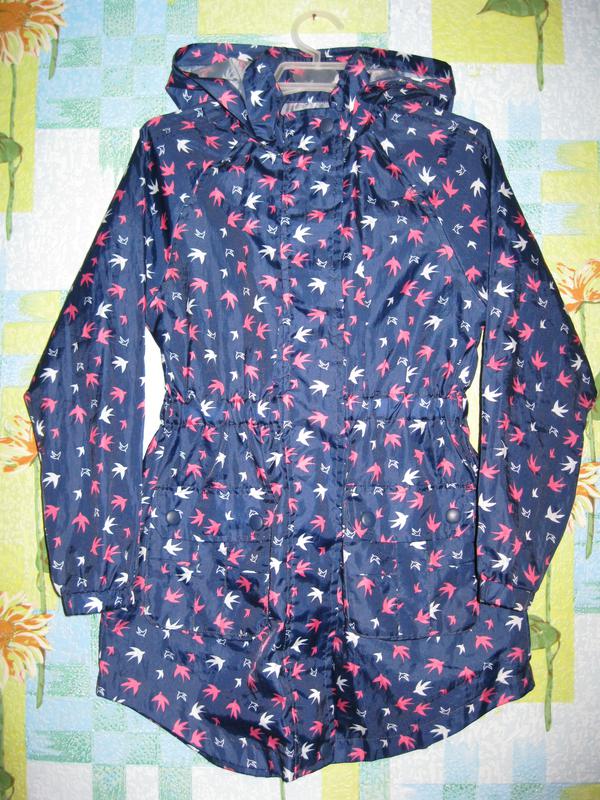 Плащ "F&F" размер 7-8 лет. Рост 128 см. Длина по спинке-65 см. Длина по молнии-64 см. Ширина под мышками-36 см. Длина рукава от шеи-55 см. Состояние идеальное.