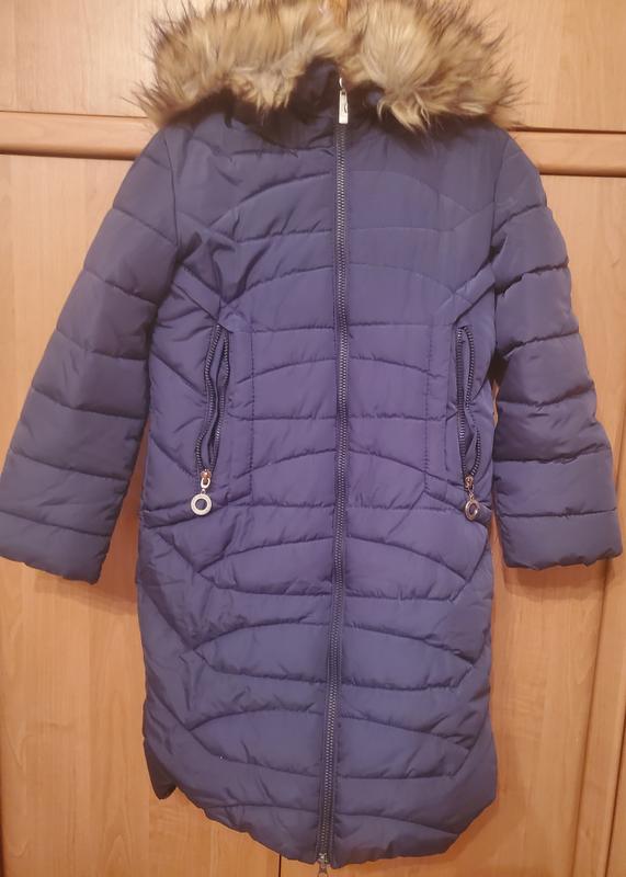 Теплозный зимний плащик для девочки 6-9 лет. Стан нового. Эффект в замке Очень красивой формы, удобно ложится по фигуре и не является громким. Мех на капюшоне снимается. Высота/длина 74см. Рукав к плечу 45см. В груди 40см.