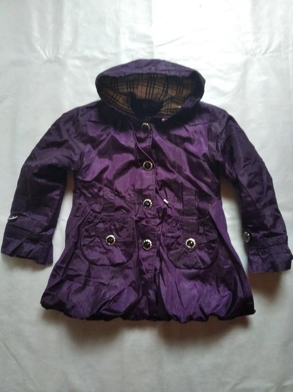 Утеплённый детский плащ с капюшоном на пуговицах Ткань с переливом, от пояса расширяется ПОГ 42 см Длина от плеча 56 см В идеальном состоянии По всем дополнительным вопросам обращайтесь в любое время