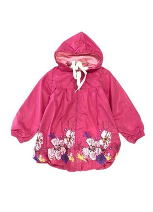 Такая ветровка будет хорошим дополнением весеннего гардероба. Приятный малиновый цвет с цветочным принтом делает изделие праздничным.Маем в двух размерах 80 и 104.