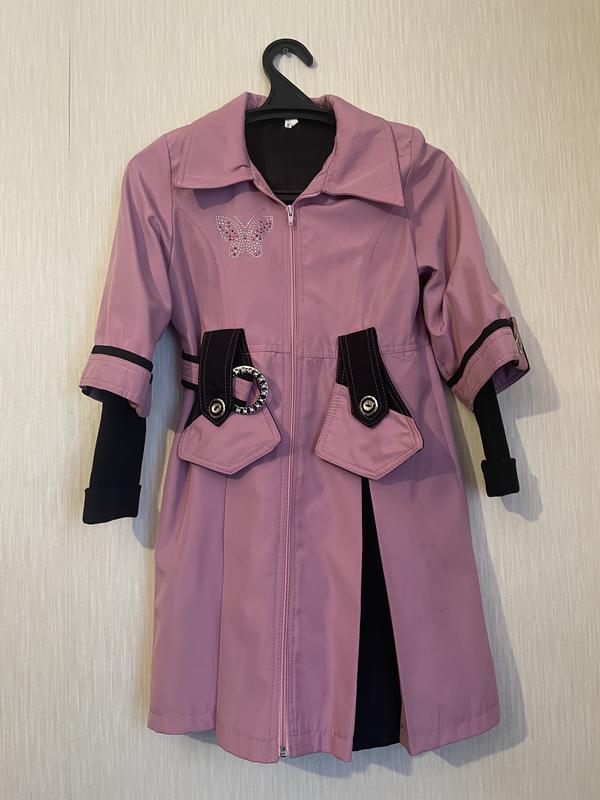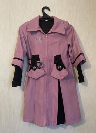 Плашок на девочку в нежно-розовом цвете. Застегивается на замочек. В комплект входить капюшон. Стан идеален! Длина: 80 см Полуобъем груди: 36 см Талии: 36 см Стегон: 43 см