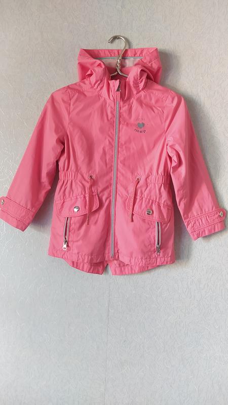 Ассиметричный плащик/ветровка ✓Фирма Palomino ✓Размер на рост 116см(по бирке)6-5лет,см.замеры: -длина спереди48/сзади52 -ширина между подмышками 36 -рукава 40 -плечи29см Уютный капюшон, регулируется в поясе Застёжка-молния надёжно фиксирует горловину(не поддувает) По бокам по 2 кармана (на кнопке, молнии) Непромокаемая, непродуваемая В чистом/ ухоженном виде Мини пятнышко(ф.9)не критично Цвет коралловый